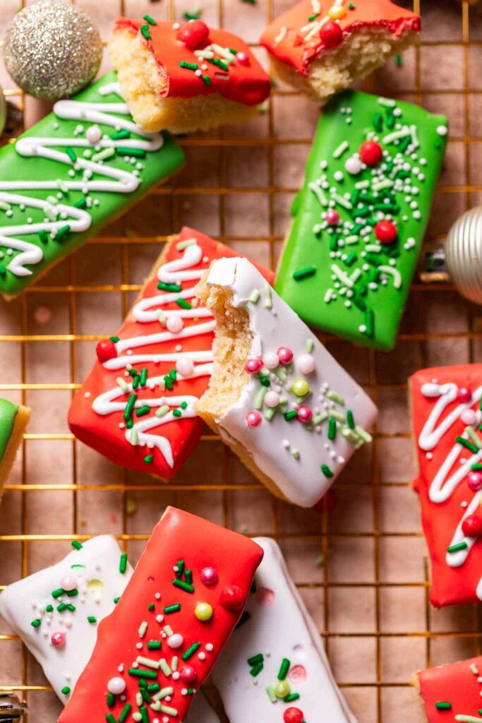 - Tint your icing with Christmas colors: red, green, white, gold.