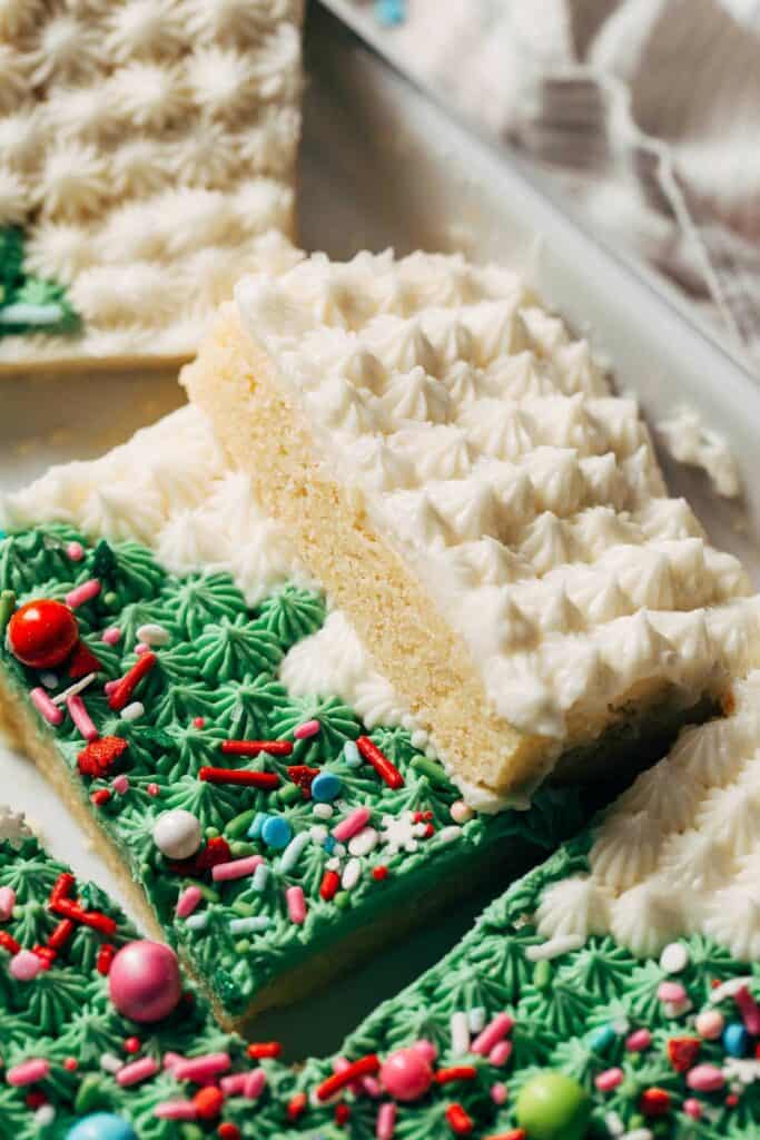 Keywords: Christmas sugar cookie bars, festive cookie recipes, holiday baking, easy Christmas treats, decorated cookie bars